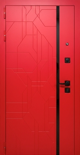 Современная металлическая дверь с панелями МДФ красного цвета (RAL 3028) и черной полосой — это гармоничное сочетание классического дизайна и современных технологий. Панели из МДФ придают двери солидный и завершённый внешний вид. Подходят для оформления входа в дом с авторским дизайном. Отделка делает модель универсальной для любого интерьера.