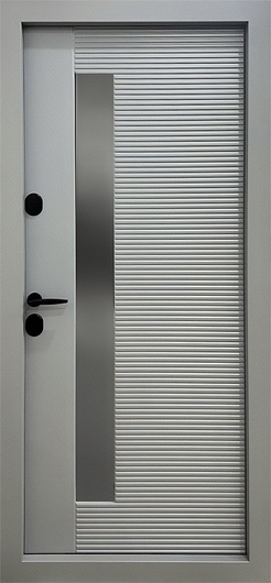 Остекленная термодверь с серым порошковым покрытием и реечным дизайном КД-1156